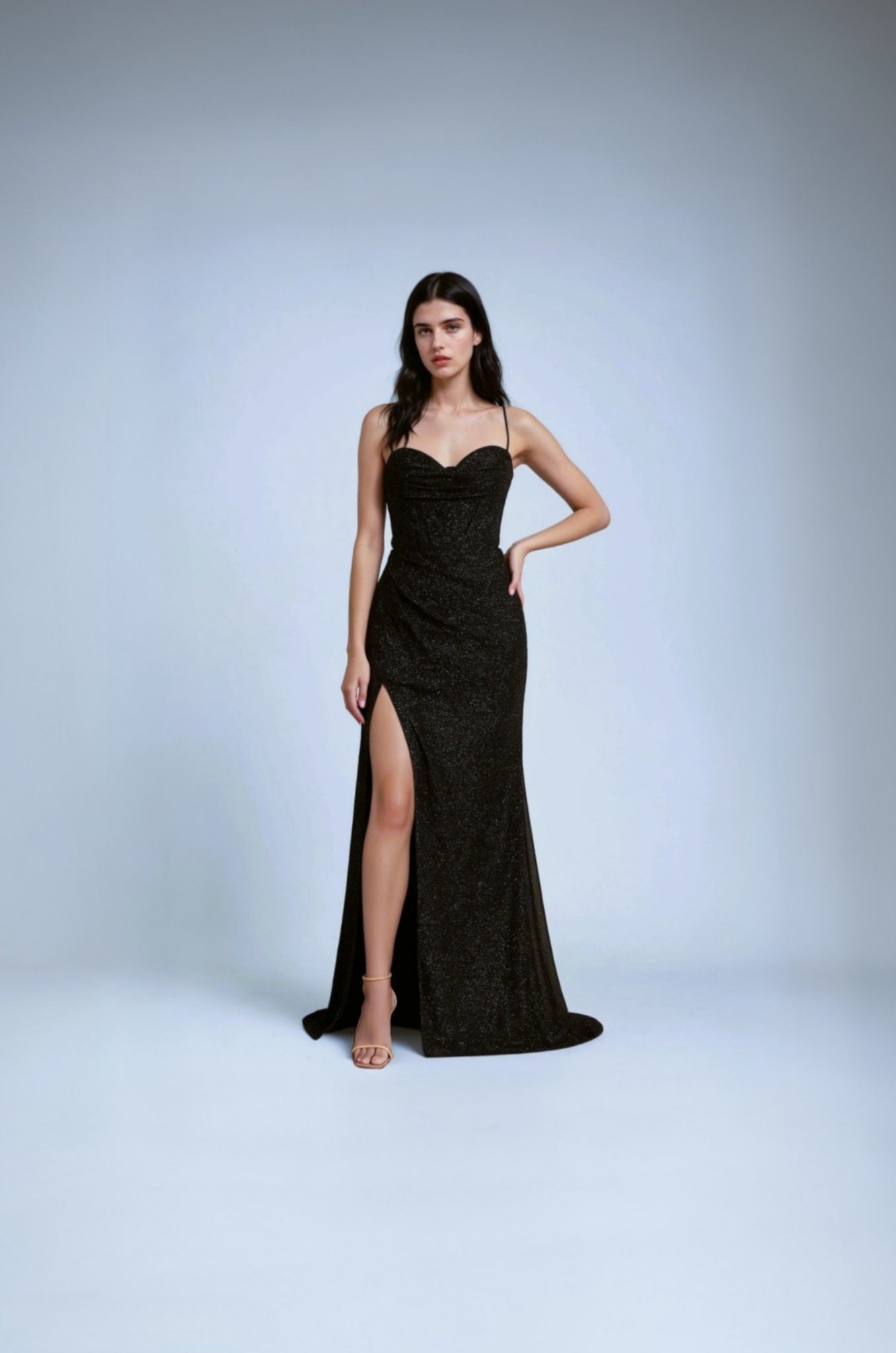 Das Eva Kleid vereint zeitlosen Charme mit einem Hauch von Glamour. Das figurbetonte Korsett betont deine Silhouette, während die zarten Pailletten für einen faszinierenden Glanz sorgen. Ob für einen Abend oder ein elegantes Dinner, dieses Kleid sorgt für Anmut und Selbstbewusstsein.